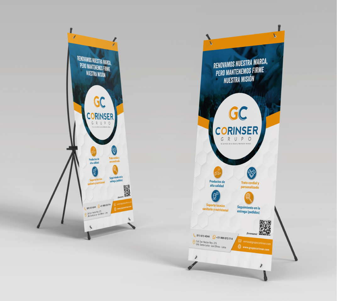 La empresa Corinser renovó sus piezas publicitarias para promocionar su línea completa de productos, manteniendo coherencia gráfica en colores y formas.