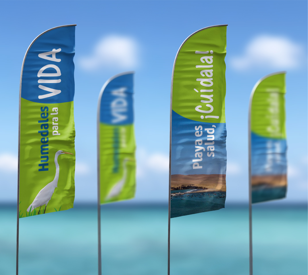 Inspirados en la belleza de los humedales de Pisco-Playa, creamos el banner principal del evento, que dio origen a la línea visual aplicada en banners, roll screens, publicaciones para redes sociales, cronograma, credenciales y certificados.